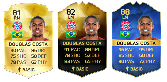One of the most in-form players in the world this chap, hence the inclusion of a couple of special items in the image above as lets face it, they’re inevitable. I spent the vast majority of the past few months playing online seasons on head-to-head as FUT this year never really clicked for me, and there’s one team I fell in love with: Shakhtar Donetsk. They had it all, pace, power, passing, dribbling and, err, more pace? And the man that made it all tick was Douglas Costa. This flying left-footed right-winger was a joy to use and I was a little disappointed when I heard he’d moved to giants Bayern Munich, simply for FIFA reason of course, and then it hit me.
